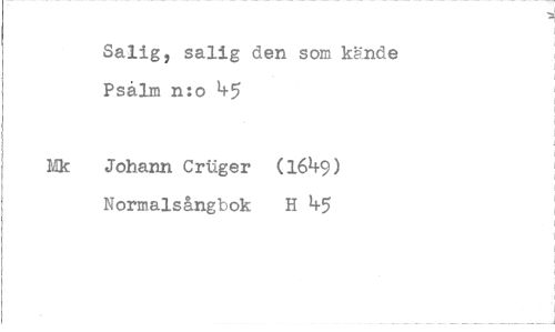 //// Salig, salig den som kände Psalm n:o 45 //// Mk Johann CrUger (1649) //// Normalsångbok H 45 ////