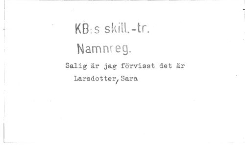 //// KB:s //// Namnregi. //// Salig är jag förvisst det är Larsdotter/ Sara ////