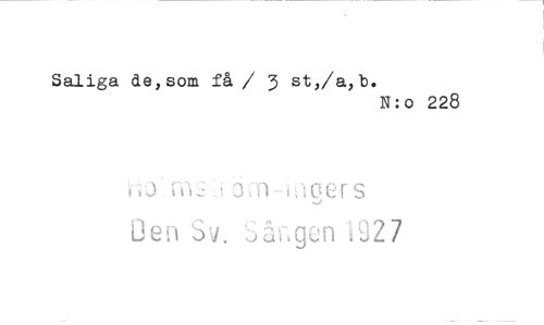 //// Saliga de,som få / 3 st,ja,b. //// N:o 228 //// 0{13 ri-1J».3;f1-cAoers //// pen Sv. Sången '927- ////
