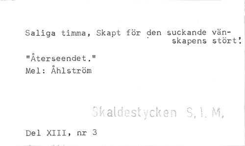 //// Saliga timma, Skapt för den suckande vän- //// skapens stört: //// "Återseendet." Mel: Åhlström //// Del XIII, nr 3 ////