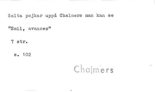 //// Salta pojkar uppå Chalmers man kan se "Emil, avancez" //// 7 str. s. 102 //// rs ////
