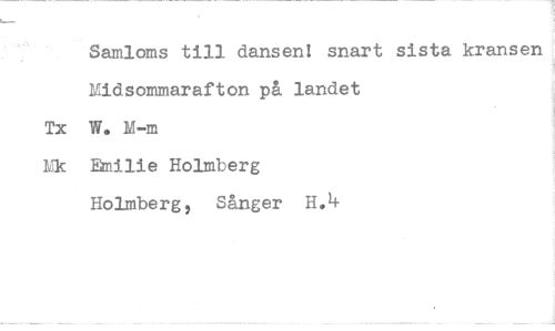 //// Samloms till danäen! snart sista kransen //// Midsommarafton på landet //// Tx W. M-m //// Ek Emilie Holmberg //// Holmberg, Sånger H.4 ////