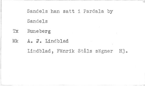 //// Sandels han satt i Pardala by //// Sandels //// Tx Runeberg //// Mk A. 3. Lindblad //// Lindblad, Fänrik Ståls sägner H3. ////