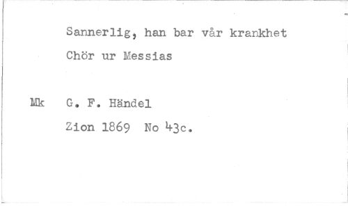 //// Sannerlig, han bar vår krankhet Chör ur Messias //// Mk G. F. Händel //// Zion 1869 No 43c. ////