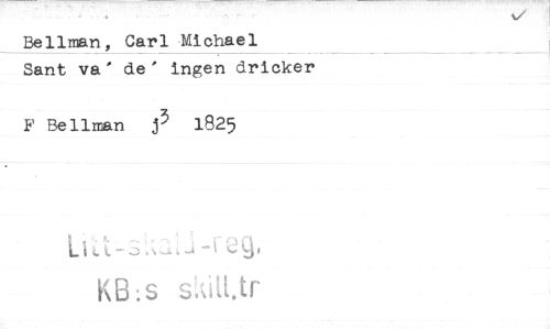 //// Bellman, Carl Michael //// Sant va' de' ingen dricker //// F Bellman j3 1825 //// L,o //// KB:s satetr ////