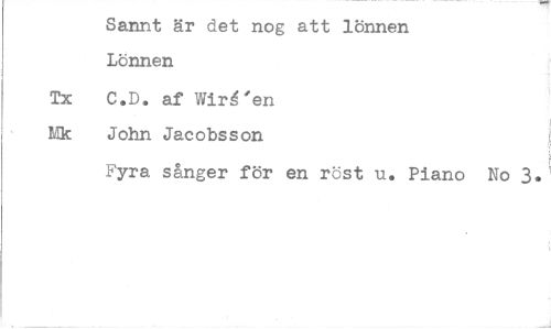 //// Sannt är det nog att lönnen //// Lönnen //// Tx C.D. af Wirgien //// Mk John Jacobsson //// Fyra sånger för en röst u. Piano No 3. ////
