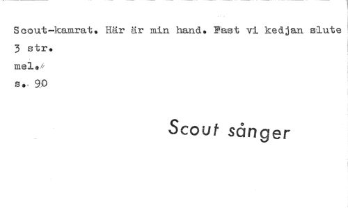 //// Scout-kamrat. Här är min hand. Fäst vi kedjan sluta 3 str. //// me1. //// 9D //// Scout sånger ////
