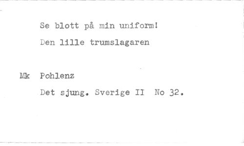 //// Se blott på min uniform! Den lille trumslagaren //// Nk Pohlenz //// Det sjung. Sverige II No 32. ////