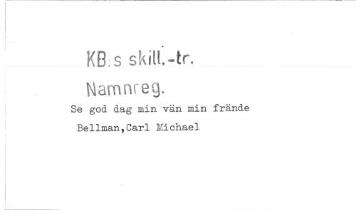 //// KB: s Skilt.-tr. //// Namnfeg. //// Se god dag min vän min frände Bellman, Carl Michael ////