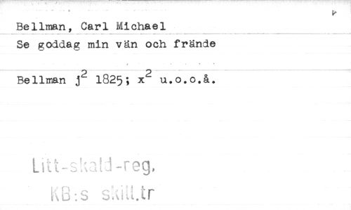 //// Bellman, Carl Michael //// Se goddag min vän och frände //// Bellman j2 1825; x2 u.o.o.å. //// ' ////