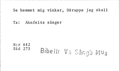 //// Se hemmet mig vinkar, Däruppe jag skall Tx: Ahnfelts sånger //// N:r 442 //// Sid 273 Bibeltr Vis Sånnb Mus ////
