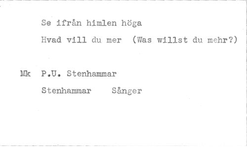//// Se ifrån himlen höga //// Hvad vill du mer (Was willst du mehr?) //// Mk P.U. Stenhammar //// Stenhammar Sånger ////