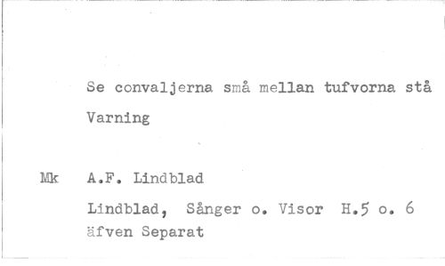 //// Se convaljerna små mellan tufvorna stå Varning //// Mk A.F. Lindblad //// Lindblad, Sånger o. Visor H.5 o. 6 äfven Separat ////