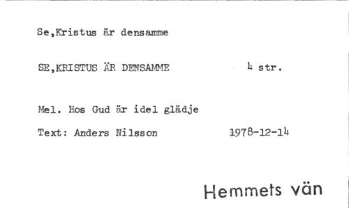 //// Se,Kristus är densamme //// SE ,KRISTUS ÄR DENSAMME 4 str. //// Mel. Hos Gud är idel glädje //// Text: Anders Nilsson 1978-12-14 //// Hemmets vän ////