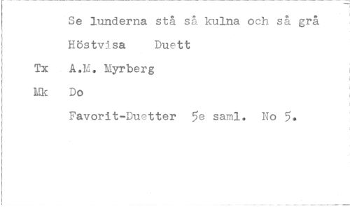 //// Se lunderna stå så kulna och så grå //// Höstv5sa Duett //// Tx A.M. Myrberg //// Ek Do //// Favorit-Duetter 5e saml. No 5. ////