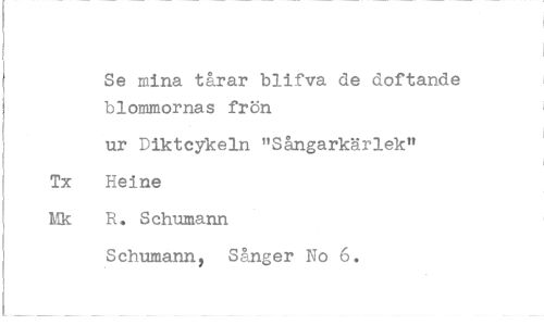 //// Se mina tårar blifva de doftande blommornas frön //// ur Diktcykeln "Sångarkärlek" Tx Heine //// fik R. Schumann //// Schumann, Sånger No 6. ////