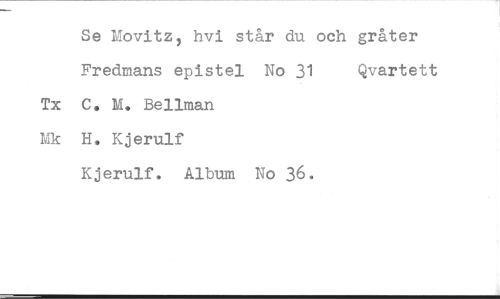 //// Se Movitz, hvi står du och gråter //// Fredmans epistel No 31 Qvartett //// Tx C. M. Bellman //// Mk H. Kjerulf //// Kjerulf. Album No 36. ////