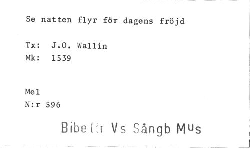 //// Se natten flyr för dagens fröjd //// Tx: J.O. Wallin Mk: 1539 //// Mel //// N:r 596 //// Bibel r Vs Sångb Mus ////