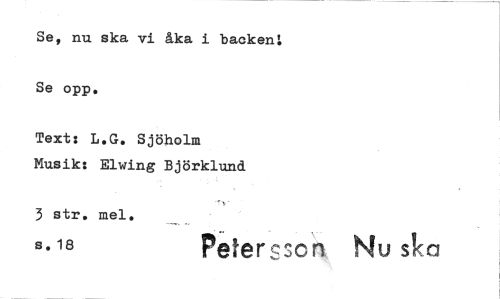 //// Se, nu ska vi åka i backen: Se opp. //// Text: L.G. Sjöholm //// Musik: Elwing Björklund //// 3 str. mel. //// 8.18 Peter scn Nu ska ////