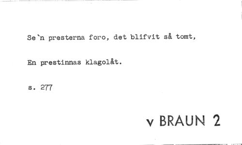 //// Se'n presterna foro, det blifvit så tomt, En prestinnas klagolåt. s. 277 //// v BRAUN 2 ////