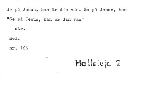 //// Se på Jesus, han är din vän. Se på Jesus, han //// "Se på Jesus, han är din vän" //// 1 str. //// mel. //// nr. 163 //// Ha 11€115.1c. 2 ////