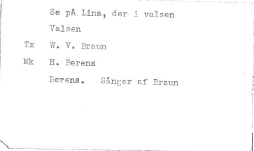 //// Se på Lina, der i valsen //// Valsen //// Tx W. V. Braun //// Ek H. Berens //// Berens. Sånger af Braun ////