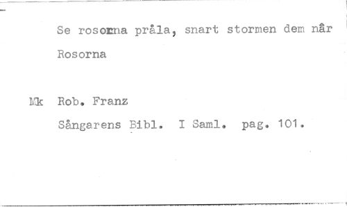 //// Se rosorna pråla, snart stormen dem når Rosorna //// Mk Rob. Franz //// Sångarens Bibi. I Saml. pag. 101. ////