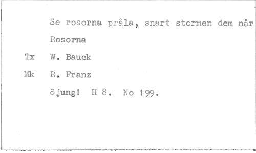 //// Se rosorna pråla, snart stormen dem når //// Rosorna //// W. Bauck //// R. Franz //// Sjung! H 8. No 199. ////
