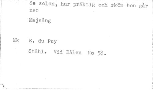//// Se solen, hur präktig och skön hon går ner //// Majsång //// Mk E. du Puy //// Ståhl. Vid Bålen No 58. ////
