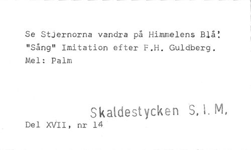 //// Se Stjernorna vandra på Himmelens Blå: "Sång" Imitation efter F.H. Guldberg. Mel: Palm //// Skaldestycken S, M, //// Del XVII, nr 14 ////