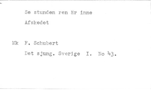 //// Se stunden ren är inne Af skedet //// fik F. Schubert //// Det sjung. Sverige I. No 43. ////