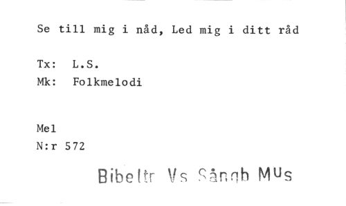 //// Se till mig i nåd, Led mig i ditt råd //// Tx: L.S. //// Mk: Folkmelodi //// Mel //// N:r 572 //// Bibe, r kis7.rih Mus ////