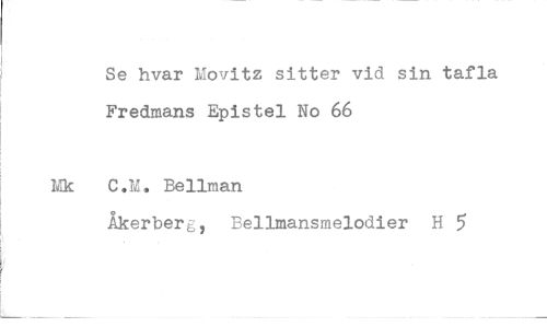 //// Se hvar Movitz sitter vid sin tafla Fredmans Epistel No 66 //// Mk C.M. Bellman //// Åkerberg, Bellmansmelodier H 5 ////