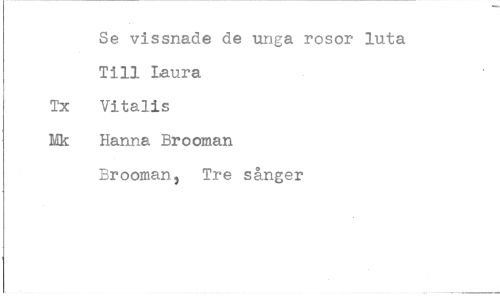 //// Se vissnade de unga rosor luta //// Till Laura //// Tx Vitalis //// Mk Hanna Brooman //// Brooman, Tre sånger ////