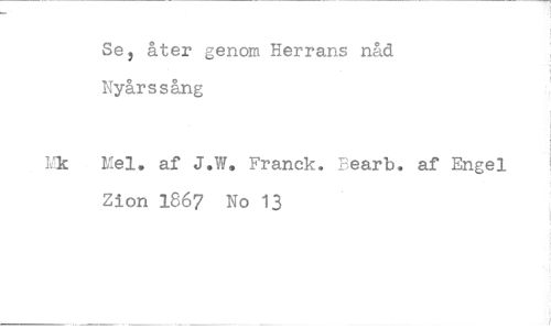 //// Se, åter genom Herrans nåd Nyårssång //// L'k Mel. af J.W. Franck. Bearb. af Engel Zion 1867 No 13 ////