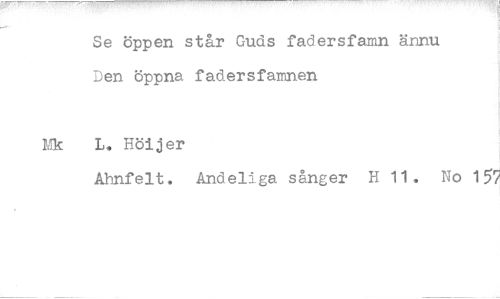 //// Se öppen står Guds fadersfamn ännu Den öppna fadersfamnen //// Mk L. Höijer //// Ahnfelt. Andeliga sånger H 11. No 159 ////