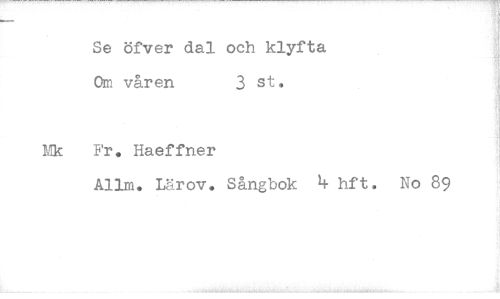 //// Se öfver dal och klyfta Om våren 3 st. //// Mk Fr. Haeffner //// Allm. Lärov. Sångbok 4 hft. No 89