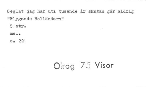//// Seglat jag har uti tusende år skutan går aldrig "Flygande Holländarn" //// 5 str. mel. s. 22 //// 0'rog 75 Visor