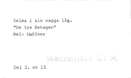 //// Selma i sin vagga lag, "De tre Behagen" //// Mel: Hasffner //// t.*. Oj i.