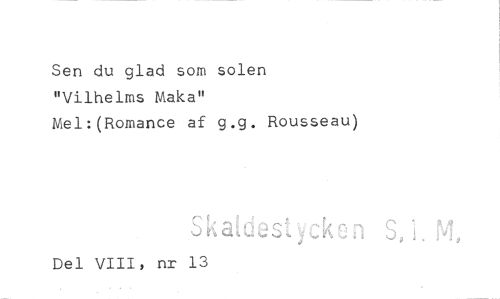 //// Sen du glad som solen "Vilhelms Maka" //// Mel:(Romance af g.g. Rousseau) //// S, i. M, //// Del VIII, nr 13