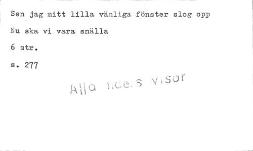 //// Sen jag mitt lilla vänliga fönster slog opp Nu ska vi vara snälla //// 6 str. s. 277 //// ,, . . - s v.sof