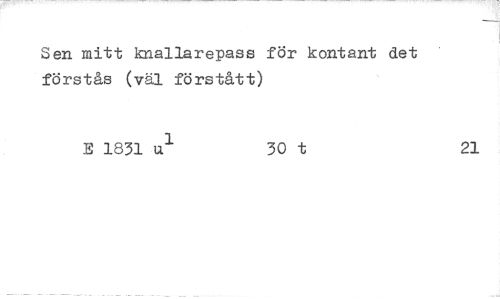 //// Sen mitt knallarepass för kontant det förstås (väl förstått) //// E 1831 //// 30 t //// 21
