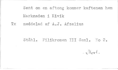 //// Sent om en aftong kommer käftenen hem Marknaden i Kivik meddelad af A.J. Afzelius //// Ståhl. Filikromen 111 Sarnl. No 2
