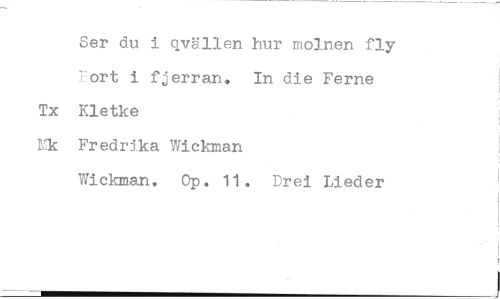 //// Ser du i qvällen hur molnen fly Port i fjerran. In die Ferne Kletke //// Fredrika Wickman //// Wickman. Op. 11. Drei Lieder