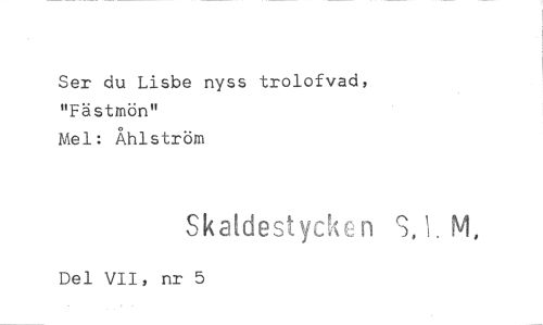 //// Ser du Lisbe nyss trolofvad, "Fästmön" //// Mel: Åhlström //// Skaldestycken S,!. M, //// Del VII, nr 5