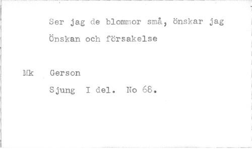 //// Ser jag de blommor små, önskar jag önskan och försakelse //// Gerson //// Sjung I del. No 68.