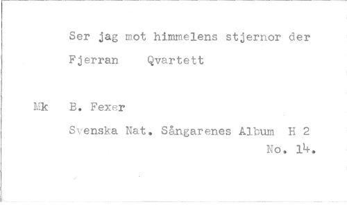 //// Ser jag mot himmelens stjernor der Fjerran Qvartett //// B. Fexer //// Svenska Nat. Sångarenes Album H 2 //// No, 14.