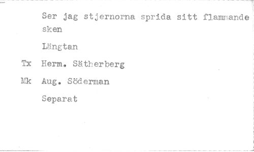 //// Ser jag stjernorna sprida sitt flammande sken //// Längtan //// Tx Herm. Sätherberg //// Mk Aug. Söderman //// Separat