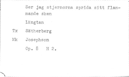 //// Ser jag stjernorna sprida sitt flammande sken //// Längtan //// Tx Sätherberg //// Mk Josephson //// Op. 8 H 2.