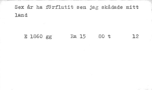 //// Sex år ha förflutit sen jag skådade mitt land //// E 1860 gg Ra 15 80 t 12